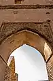 از بنای تاریخی مسجد خسروشیر، اکنون بخشی از ایوان جنوبی آن برجای مانده، اما تزئینات گچی و کتیبههای پخته و زیبایی که دیوارها را آراستهاند نشان از عظمت واهمیت بنا در دوران آبادانی و رونق آن دارد. مسجد خسروشیر از وسعت زیادی برخوردار بوده و در کنار آن، مناره آجری بلندی نیز وجود داشتهاست سبک معماری بنا نشان دهنده مساجد دوایوانی و تا حدی قابل مقایسه با مسجد فریومد بودهاست. گمانه زنیها و مطالعات کالبدی بنا نشان داده است که احتمالاً این مسجد در اوایل قرن هفتم هجری همزمان و همانند مساجد فریومد، گناباد، زوزن، ساخته شدهاست و در دورههای بعدT بخصوص دوران ایلخانی مرمت شده واحتمالا قسمتهایی به آن الحاق شدهاست.[2]