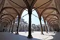 این مسجد در چند قدمی سرای توپقاپی قرار دارد، کاخی که محل اقامت پادشاهان عثمانی تا سال ۱۸۳۵ بود و فقط تا ساحل بسفور چند دقیقهای فاصله دارد. اگر از دریا به مسجد نگاه کنید، گنبدها و منارههای مسجد در بخش قدیمی شهر برجسته هستند و هدف سازندگان هم ایجاد چنین چشمانداز زیبایی بودهاست.