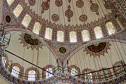 در واقع در بالای مکعب مجموعهای از گنبدها و شبه گنبدها فضا را تسخیر میکنند و به سمت گنبد اصلی اوج میگیرند، گنبد اصلی ۳۳ متر قطر و ۴۳ متر ارتفاع دارد. جلوه نهایی یک هماهنگی بینایی زیباست که چشم را به سمت انتهای گنبد هدایت میکند.
