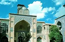 این ساعت بر فراز طاق غربی این مسجد، در میان تزیینات معرق و کاشی کاری قاجاریه، بیش از صد و هفتاد سال میباشد که خود نمایی میکند. نصب ساعت در دوران گذشته در سطح شهر و به خصوص در مساجد جهت اطلاع رسانی بود.