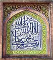 خوشنویسی عربی بر روی کاشیکاری لعابدار.