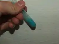 مس II هیدروکسید Cu(OH)۴)) مادهای ژلهای و ناملول در آب این ماده به رنگ آبی روشن و به رامن وتو دالببازیکردن مولکول هااز ترکیب پتاسیم هیدروکسید و مس سولفات (کات کبود) به وجود میآید