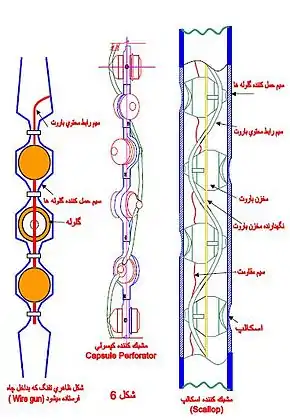 به این صورت عمل میکند که چندین گلوله روی یک تفنگ مخصوص که شبیه به لوله است بسته شده و با رسیدن به عمق مورد نظر با شوک الکتریکی که از روی چاه اعمال میشود، یک،دو یا همهٔ آنها شلیک میشوند.