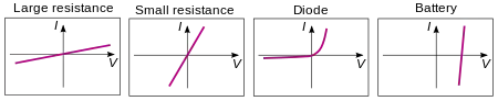 سادهترین مشخصات IV شامل یک مقاومت میشود، که با توجه به قانون اُهم رابطه خطی میان ولتاژ اعمال شده و جریان گذرنده وجود دارد. هرچند، در این مورد فاکتورهای محیطی همچون دما یا خصوصیات ماده سازنده مقاومت میتواند منحنی غیرخطی بسازد.