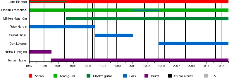 - فردریک ثوردندال – گیتار لید، همخوان (۱۹۸۷–تاکنون)، بیس (۲۰۰۱–۲۰۰۴)