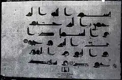![]() دستنوشتهٔ قرآن منسوب به علی بن ابی طالب که در کتابخانهٔ حرم امام علی نگهداری میشود. این صفحه مربوط است به سوره البروج آیات ۱–۳. | |