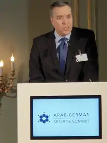 ![]() ادیب در اجلاس ورزشی عرب و آلمان در قطر (۲۰۱۹) | |