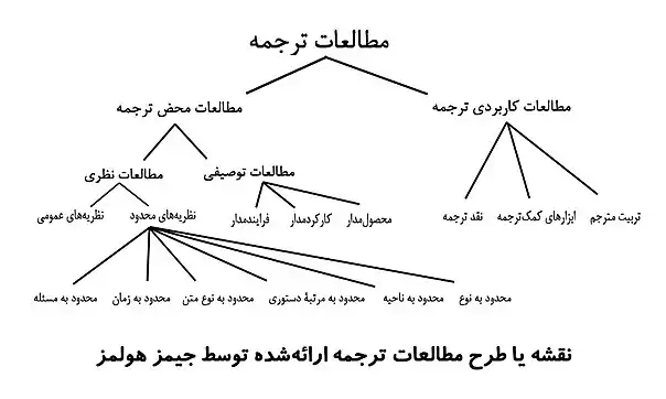 جیمز هولمز نخستین فردی بود که از رشتهای مستقل به نام مطالعات ترجمه سخن گفت. مقالۀ وی با عنوان «نام و ماهیت مطالعات ترجمه» گام مهمی بود که براساس آن شالودۀ معرفتشناختی رشتهای مستقل بهنام مطالعات ترجمه استوار گشت. وی در این مقاله با اعراض از رویکردهای زبانشناختی، بررسی زبانی پدیدۀ ترجمه را ناکافی دانست و با عنایت به پیچیدگیهای ترجمه، خواستار نظام معرفتی مستقلی شد که بررسی همهجانبۀ ترجمه را فراهم سازد. هماو بود که در مقالۀ خود، از لفظ Translation Studies استفاده کرد و دایرۀ شمول و ساختار معرفتی رشته را نیز شرح داد که بعدها به نقشه یا طرح مطالعات ترجمه معروف شد. این طرح تا به امروز سرلوحۀ بسیاری از نظریهپردازان قرار گرفته و در شناخت مطالعات ترجمه بسیار راهگشا بوده است. طبق این طرح، مطالعات ترجمه به سه شاخۀ اصلی مطالعات توصیفی، نظری و کاربردی تقسیم میشود–مطالعات توصیفی و نظری درواقع دو زیرشاخۀ مطالعات محض هستند–که هر یک، در عین استقلال موضوعی، در ارتباط با دیگر شاخهها قرار داشته و همدیگر را تغذیه میکنند