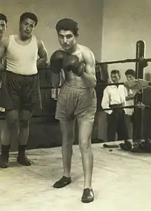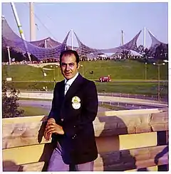 ![]() مظفر مسافری، در لباس سر مربی تیم ملی بوکس ایران در بازیهای المپیک ۱۹۷۲ مونیخ | |