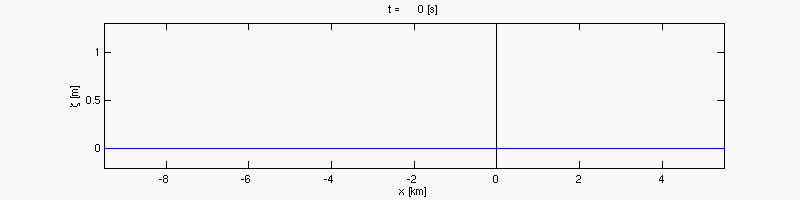 که در آن η ارتفاع ستون سیال و H عمق آب ساکن هستند. u و v سرعتهای افقی متوسطگیری شده در عمق و g شتاب گرانش هستند. معادلهٔ اول از پایستگی جرم و معادلهٔ دوم از پایستگی تکانه مشتق شدهاند.[2]