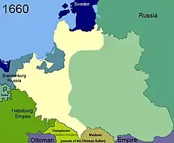 Poland at the time of the treaty of 1660 (significant territories occupied by Russia during the Russo-Polish War (1654–1667)