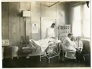 | یک مطب و بیمار درحال آزمون کلینیک٬ واشینگتن جنگ جهانی اول. | |
