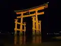 ![]() توری معبد ایتسوکوشمیا، بیشترین مشخصه برجسته، به نظر می رسد در آب شناور است | |