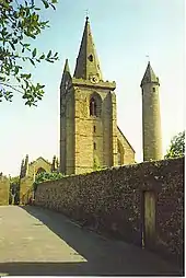 صدور مسیحیت از ایرلند به اسکاتلند در قرن ششم میلادی به ساخت کلیساهای سادهٔ بنّاییساز (موسوم به شیوهٔ سلتی)[31] انجامید. این روند از ساحلهای غربی و جزایر اسکاتلند آغاز شد.[32] معماری قرون وسطایی کلیساهای روستاها در اسکاتلند از انگلستان خامتر و سادهتر بود. بسیاری از این کلیساها برج، راهرو و بازوی عرضی نداشتند و صرفاً دالانهایی دراز بودند. کلیساها در اسکاتلند کوهستانی ازین نیز سادهتر بودند و از نمای بیرون نمیشد بنّاییِ قلوهسنگی آنها را از خانههای روستایی تشخیص داد.[33] بااینحال، از قرن هشتم میلادی، معماری کلیساهای اسکاتلند پیچیدهتر شد. استفاده از سنگ نماهای رومانسک (که پس از سقوط روم به شیوهٔ غالب معماری در اروپای قارهای بدل شدهبود) به این ساختمانهای بنّایی و سنگی ظاهری یکپارچه داد. از نمونهٔ این ساختمانها میتوان به برجهای مربعی کلیسای جامع برچین (که در مجاورت برج گرد ایرلندی قرن یازدهمی ساخته شدهاست)، کلیسای جامع دانبلین و کلیسای جامع سنت اندروز اشاره کرد.[32]