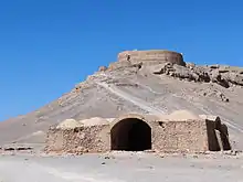 برج خاموشان و یک اقامتگاه که دارای اتاقهایی است.