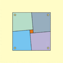 نسخهٔ دیگری از این معما به چهار چهارضلعی و یک مربع کوچک در میان آنها مربوط میشود که در کنار هم مربع بزرگتری میسازند. هنگامی که چهارضلعیها میچرخند فضای مربع کوچک را پر میکنند ولی به نظر میرسد مربع بزرگ بدون تغییر مانده است.