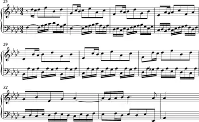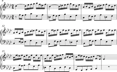 در کنترپوان معکوس، جابجایی دو ملودی که همزمان اجرا میشوند و با همان فاصلهها در بخش پایینی یا بالایی صدا، تکرار و جابجا میشوند. در این مثال دو ملودی به صورت کنترپوان حرکت میکنند و در تکرار، بخش بالا به پایین منتقل شده و در «کلید فا» اجرا میشود.