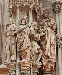 ![]() تندیس سه مغ که در هنگام تولد عیسی مسیح برای وی و مریم مقدس هدیههایی آوردند کلیسای جامع استراسبورگ | |