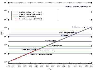دلایل خوبی برای باور داشتن وجود دارد که، صرف نظر از استراتژی پیادهسازی، پیشبینیهای انجام مغز مصنوعی در آینده نزدیک خوشبین هستند. به ویژه مغز (از جمله مغز انسان) و شناخت در حال حاضر به خوبی درک نمیشود، و مقیاس محاسبات مورد نیاز ناشناخته است. یکی دیگر از محدودیتهای نزدیک مدت این است که تمام رویکردهای فعلی برای شبیهسازی مغز نیاز به سفارش مصرف انرژی بزرگتری نسبت به مغز انسان دارد. مغز انسان حدود ۲۰ را مصرف میکند W از قدرت در حالی که ابر رایانههای فعلی ممکن است تا مقدار ۱ استفاده کنید MW یا سفارش ۱۰۰٬۰۰۰ بیشتر.