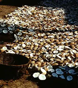 مغز نارگیل در حال خشک شدن در آفتاب.