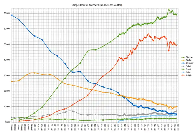 سهم استفاده از مرورگرهای وب طبق StatCounter