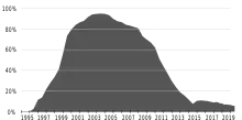 Usage share of اینترنت اکسپلورر، ۱۹۹۴–۲۰۰۸[9]