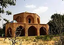 نقشه گنبد از داخل چهارضلعی و در مراحل بعد این بنا دارای گنبد دو پوشه و چهار ورودی به سمت چهار جهت جغرافیایی و شامل ایوانهایی در داخل و خارج بنا است. ایوانهای داخلی و گنبد با تزئینات هندسی شمسی و ستاره رنگی تزئین شدهاند. تزئینات رنگی بنا نیز شامل رنگ قرمز در ایوانهای داخلی و رنگهای قرمز و سبز در گنبد است.