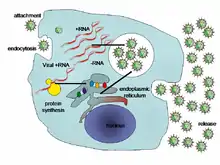 - نفوذ پس از اتصال اتفاق میافتد. ویروسها توسط اندوسیتوز یا با ادغام با سلول هدف به آن نفوذ میکنند.