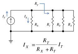 یک فرمول کلی برای جریان I X در مقاومت R X که موازی با یک ترکیب دیگر از مقاومتها از مقامت کل RT است (به شکل ۱ نگاه کنید):