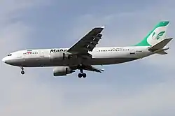 یک فروند هواپیمای ایرباس ای۳۰۰بی۴-۶۰۰ هواپیمایی ماهان در حال فرود در فرودگاه بیرمنگام، انگلستان (۲۰۱۰)
