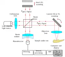 مقطع نگاری همدوسی اپتیکی (OCT) فرایند تحقیقی در نور با طول همدوسی کم، با استفاده از تداخل برای اندازهگیری فاصله در پراکندگی مواد مورد استفاده قرار میگیرد. جسم تحت بررسی به صورت نقطه به نقطه اسکن داده میشود. کاربرد اصلی آنها در پزشکی است. مزایا نسبت به روشهای مشابه عمق نفوذ نسبتاً بالا (۱–۳ میلیمتر) در بافت پراکندگی و رزولوشن محوری بالا (۰٫۵–۱۵ میکرون) در سرعتهای اندازهگیری بالا (300-20 kvoxel / S) است. اساس OCT بر پایه تداخل سفید نور است؛ این روش مقایسه زمان در حال اجرای یک سیگنال با استفاده از تداخل سنج (معمولاً تداخل مایکلسون) است. تداخل سیگنالهای (همبستگی متقابل نوری) هر دو بازو باعث الگویی میشود که میتوان از آن به طول راه نوری نسبی پی برد. بر خلاف میکروسکوپ نوری مرسوم، OCT قدرت تفکیک عرضی دارد. رزولوشن عرضی از روی دیافراگم عددی سیستم اپتیکی مورد استفاده تعیین میشود. قدرت تفکیک فضایی طولی در عمق ماده به پهنای طیفی نور مورد استفاده بستگی دارد.