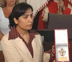 - جایزه سالانه «زن صلح» در اوایل اوت ۲۰۰۶ از سوی سازمان آمریکایی بنیاد نیروی صلح زنان (Women’s Peacepower Foundation)