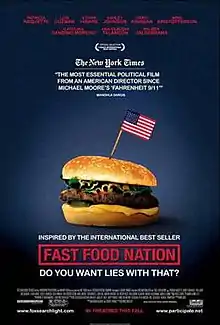 ![]() پوستر فیلم ملت غذای آماده با عکسی از یک همبرگر و بر روی آن پرچم آمریکا | |