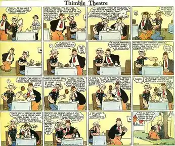 | پدیدآورنده | الزی کریسلر سگار (خالق، ۱۹۱۹–۱۹۳۷، ۱۹۳۸) داک وینر (۱۹۳۷, ۱۹۳۸) تام سیمز و بلا زابولی (۱۹۳۸–۱۹۵۵) رالف اشتاین و بلا زابولی (۱۹۵۴–۱۹۵۹) باد سیجندورف (۱۹۵۹–۱۹۹۴) بابی لندن (۱۹۸۶–۱۹۹۲) های آیسمن (۱۹۹۴–اکنون) بازیگران رابین ویلیامز (فیلم ۱۹۸۰) صداپیشگان ویلیام کاستلو (۱۹۳۳–۱۹۳۵) ددمار پوپن (۱۹۳۵–۱۹۳۶, رادیویی) فلوید باکلی (۱۹۳۶–۱۹۳۷ رادیویی) جک مرسر (۱۹۳۵–۱۹۴۵ و ۱۹۴۷–۱۹۸۴) می کوئستل هری فوستر ولش (۱۹۴۵–۱۹۴۷) موریس لامارچ (۱۹۸۵–اکنون) بیلی وست کیت اسکات[1] اسکات اینس (آگهی) تام کنی (۲۰۱۴ آزمون انیمیشن)[2] |