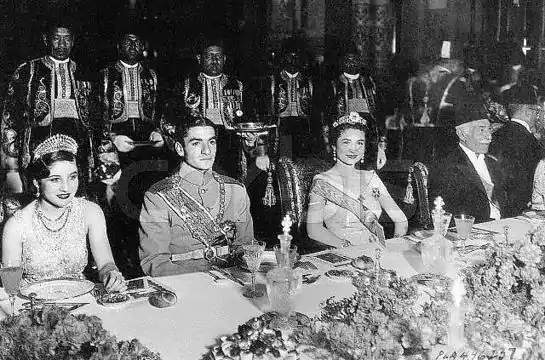 (از راست) فوزیه، محمدرضا پهلوی، و ملکه فریده همسر ملک فاروق
