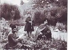 عصمتالدوله دختر شاه به همراه دو دختر دیگر و ملیجک