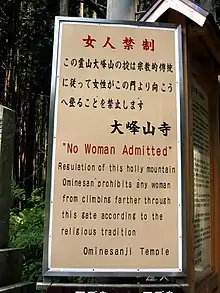 تابلوی ممنوعیت ورود زنان در کوه اومینه