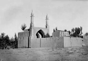 خمار تکین… مناری رفع کرد و صیتِ آن دو منار [پیشینِ ساختهٔ عبدالله طاهر] را دفع کرد، چنانچ در دنیا ارفع از آن و اعجب و آراستهتر و پیراستهتر و دایرتر منار در هیج دیار هیچ نجّار ندید. از فوق عالیِ بامِ جامع تا سرِ منار نود و چار ذراع بود؛ و اجرت استادان بیمزدور خرجِ عمارت دوهزار مثقال طلا مقرر کرده بودند و به هندسه چنان ترتیب کرده بودند که چون باد آمد فراخورد قوّهٔ باد آن منار حرکت کردی اما نیفتادی و هیچ خشتی و جزئی از آن وی فاسد نشدی.