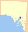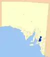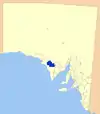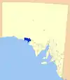 | City of Whyalla | وایالا | Eyre Peninsula | 1970 | ۱٬۰۳۳ | ۳۹۹ | ۳۹۹ | 399 | ۲۲٬۷۵۹ | [[:en:File:Whallya_LGA.png| ]] | |
