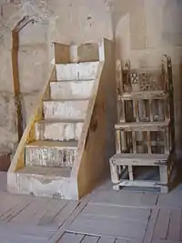 در برخی دیگر از نقلها آمده است که پیش از آن، سکّویی از گِل ساخته بودند که محمد بر روی آن مینشست و تنها در سال هفتم هجری قمری بود که مردم منبری چوبین ساختند پیامبر اسلام بر روی آن مینشست.
