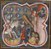 - بازپسگیری اورشلیم اثر جمعی از نویسندگان همچون تورکواتو تاسو که در قرن ۱۶ نوشته شد. در این کتاب به موضوع بازپسگیری اورشلیم طی جنگ صلیبی اول و رهبری نیروهای صلیبی توسط گادفری بوین پرداخته میشود.[48]