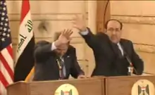 در غروب یکشنبه ۱۴ دسامبر ۲۰۰۸ (۲۴ آذر ۱۳۸۷) در جریان مصاحبه مشترک مطبوعاتی جرج بوش، رئیسجمهور آمریکا و نوری مالکی با خبرنگاران در بغداد، توسط منتظر الزیدی خبرنگار عراقی تلویزیون البغدادیه رخ داد.