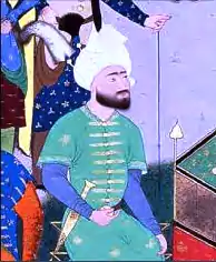 ![]() نگارگری چهرهٔ منذر در شاهنامه طهماسبی. | |
