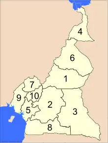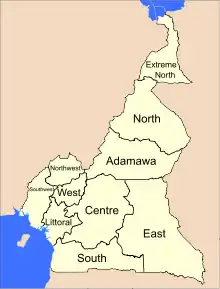 مشارکتکنندگان ویکیپدیا. «Regions of Cameroon». در دانشنامهٔ ویکیپدیای انگلیسی، بازبینیشده در ۲۶ مارس ۲۰۱۲.