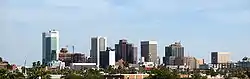 ![]() ![]() ![]() ![]() ![]() ![]() ![]() چپ-راست از بالا: Downtown Phoenix skyline, Lake Pleasant in Peoria, the Papago Buttes at Papago Park، ورزشگاه دانشگاه فینکس in Glendale, برج چیس فنیکس، the tallest building in Arizona, the Fountain of فانتین هیلز، آریزونا، Tempe Town Lake with high-rises at night. | |