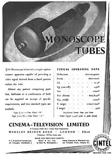 مونوسکوپ به لحاظ ساختاری به CRT (لامپ پرتوی کاتدی) شبیه بود که از یک سمت دارای یک تفنگ شلیک الکترون بود. با این حال، به جای یک صفحه نمایش با پوشش فسفری که تصویر را نشان بدهد، دارای یک صفحه فلزی بود که تصویر روی آن ایجاد میشد. همانطور که پرتو الکترونی صفحه هدف را اسکن میکرد، تعداد متغیری از الکترونها از نقاط مختلف تصویر منعکس میشدند. الکترونهای بازتاب شده توسط یک حلقه الکترود داخلی دریافت میشدند و یک سیگنال الکتریکی متغیر را تولید میکردند که بعد از تقویت به ویدئو تبدیل میشد.