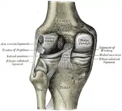 ![]() Left knee joint from behind, showing interior ligaments. | |