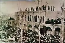 برافراشتن پرچم این جمهوری بر بالای ساختمانی در اطراف میدان چوارچرای سابق یا شهرداری کنونی