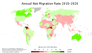 نرخ مهاجرت خالص سالانه ۲۰۱۵ الی ۲۰۲۰ - پیشبینی شده توسط سازمان ملل در ۲۰۱۹
