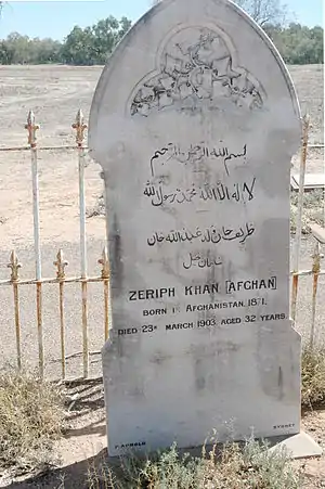 قبر یک ساربان افغان با نام ظریف خان در استرالیا در سده ۱۹ میلادی